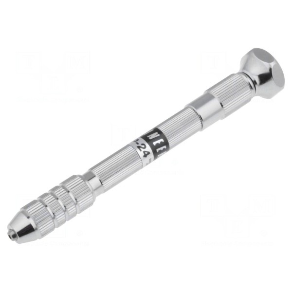 Uchwyt wiertarski TP-24 przeznaczony jest do mocowania narzędzi o średnicy trzpienia w zakresie 0,3 mm do 3,2 mm. Konstrukcja narzędzia opiera się na korpusie wykonanym z mosiądzu oraz końcówce zaciskowej wykonanej ze stali, co zapewnia odpowiednią sztywność podczas pracy.