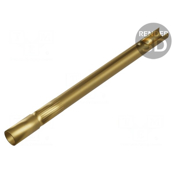 Styki gniazda wykonane zostały z mosiądzu i poddane procesowi złocenia. Całkowita długość komponentu wynosi 24,5 mm.