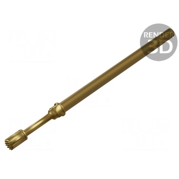 Konstrukcja igły bazuje na miedzi berylowej, która została poddana procesowi złocenia w celu pokrycia styku. Komponent charakteryzuje się rezystancją styku na poziomie maksymalnie 10mΩ oraz może być eksploatowany w szerokim zakresie temperatur roboczych, od -100°C do 200°C. Długość całkowita elementu wynosi 35,8mm.