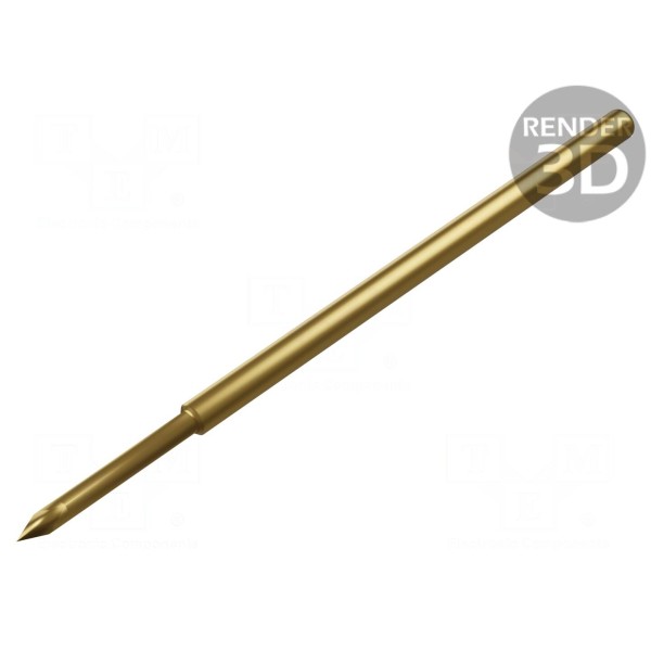 Styk wykonany jest ze stali i wykończony powłoką złoconą, co wpływa na jego parametry użytkowe. Średnica końcówki wynosi 0,91mm, a całkowita długość elementu to 33,4mm. Podzespół może być eksploatowany w szerokim zakresie temperatur pracy od -50°C do 150°C.