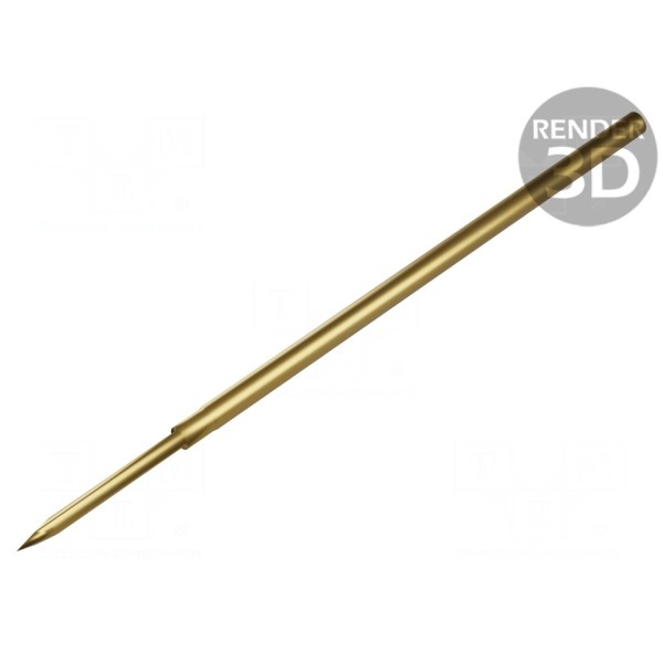 Igła testowa o długości całkowitej 33,1 mm przeznaczona jest do precyzyjnych pomiarów w układach o rastrze minimalnym 1,91 mm. Element charakteryzuje się kształtem końcówki typu główka LA o średnicy 0,64 mm oraz stalową konstrukcją styku z powłoką złoconą, co zapewnia rezystancję styku na poziomie maksymalnie 10 mΩ.