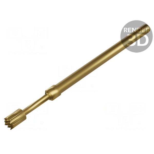 Styk wykonany został z miedzi berylowej z wykończeniem złoconym, co zapewnia przewodność przy prądzie znamionowym w zakresie od 5A do 8A. Maksymalna rezystancja styku wynosi 20mΩ, a komponent może pracować w temperaturach od -40°C do 80°C. Całkowita długość igły testowej wynosi 32,3mm.