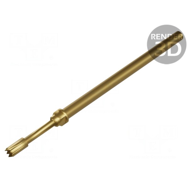 Igła testowa typu CG przeznaczona jest do precyzyjnych pomiarów w układach o rastrze minimalnym 2,54mm. Element wykonany został z miedzi berylowej, a powierzchnia styku jest złocona, co zapewnia rezystancję styku na poziomie maksymalnie 20mΩ. Średnica końcówki wynosi 1,5mm, a długość całkowita igły to 35,8mm.