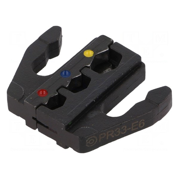 Szczęki do zaciskania przeznaczone są do obróbki końcówek izolowanych o przekroju przewodu od 0,5mm² do 6mm². Komponent obsługuje przewody w zakresie rozmiarów od 20AWG do 10AWG.