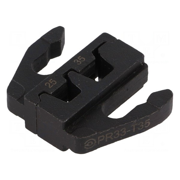 Szczęki do zaciskania przeznaczone są do obróbki końcówek tulejkowych izolowanych oraz nieizolowanych. Element jest przystosowany do pracy z przewodami o przekroju od 25mm² do 35mm², co odpowiada zakresowi 3AWG do 2AWG.