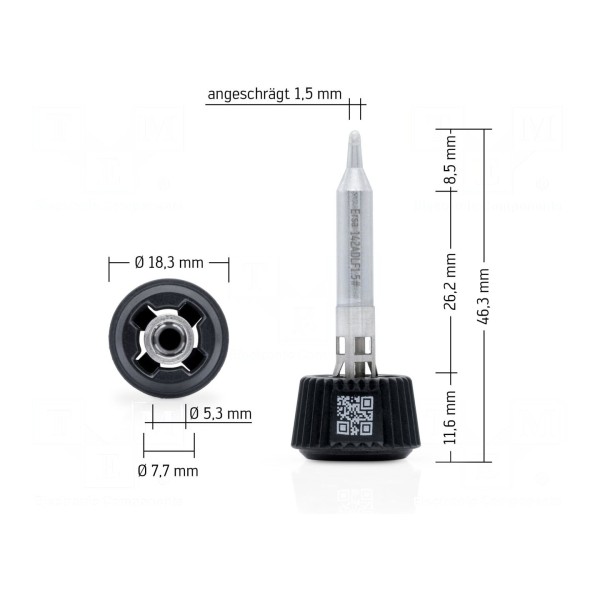 Grot przeznaczony jest do lutownic grzałkowych oraz stacji lutowniczych. Element charakteryzuje się kształtem stożka o średnicy końcówki wynoszącej 1,5mm.