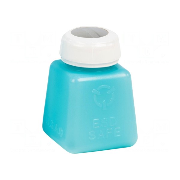 Konstrukcja akcesorium charakteryzuje się wysoką odpornością chemiczną na większość alkoholi oraz rozpuszczalników. Butelka dostępna jest w jasnoniebieskim kolorze i stanowi element wyposażenia w wersji ESD.