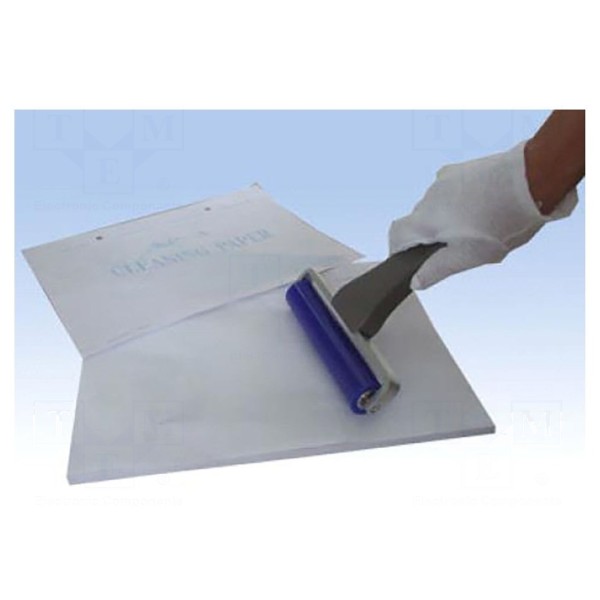 Produkt stanowi papier klejący przeznaczony do stosowania w środowiskach typu cleanroom. Wymiary arkuszy wynoszą 330x240mm.