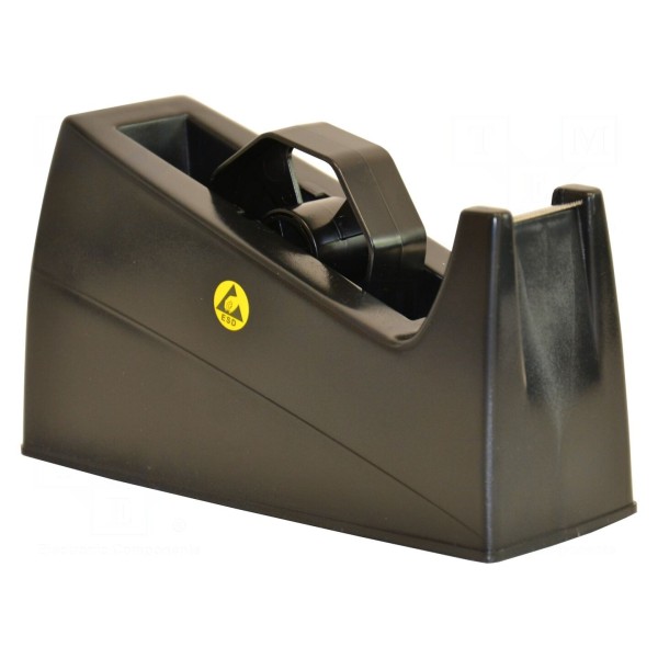 Podajnik taśmy w wersji ESD przeznaczony jest do bezpiecznego dozowania materiałów eksploatacyjnych w środowiskach wymagających ochrony przed wyładowaniami elektrostatycznymi. Urządzenie zostało wykonane z czarnego tworzywa ABS, a jego rezystancja powierzchniowa wynosi poniżej 0,1 MΩ. Konstrukcja jest zgodna z normą EN 61340-5-1, co potwierdza przystosowanie produktu do pracy w strefach EPA.
