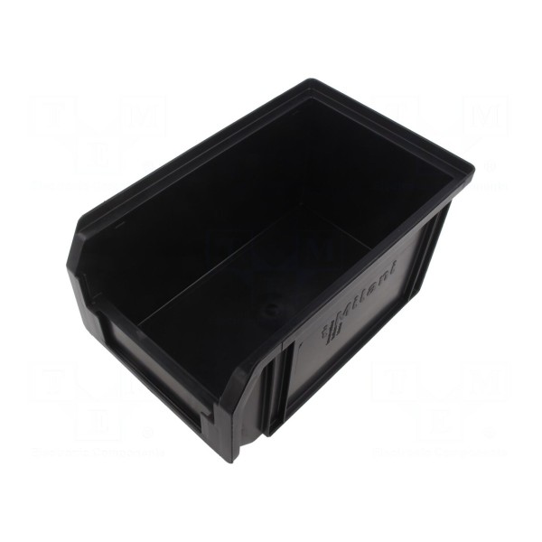 Wymiary zewnętrzne pojemnika wynoszą 230mm głębokości, 150mm szerokości oraz 125mm wysokości. Kolor obudowy to czarny.