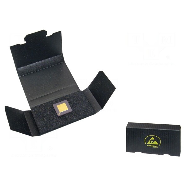 Pojemnik antystatyczny w formie pudełka wykonany został z czarnej tektury przewodzącej. Wewnątrz znajduje się pianka ochronna, która stabilizuje przechowywane elementy. Konstrukcja zapewnia ochronę przed wyładowaniami elektrostatycznymi zgodnie z wymaganiami normy IEC 61340.