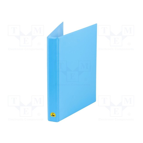 Segregator ESD w formacie A4 wykonany jest z winylu w kolorze niebieskim. Produkt został przystosowany do pracy w środowisku typu cleanroom w klasie ISO 5, spełniając wymagania dotyczące rozpraszania ładunków elektrycznych. Konstrukcja charakteryzuje się rezystancją powierzchniową poniżej 100GΩ.