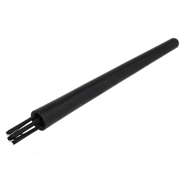 Długość całkowita akcesorium wynosi 122 mm, a średnica 11 mm. Długość włosia szczotki to 17 mm, co pozwala na precyzyjne czyszczenie elementów w środowiskach wymagających ochrony przed wyładowaniami elektrostatycznymi.