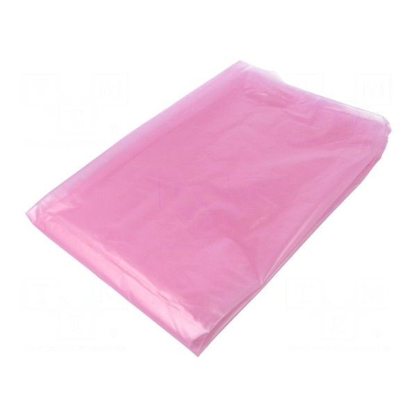 Torba na śmieci ESD o pojemności 180 litrów została wykonana z polietylenu o niskiej gęstości (LDPE) w kolorze różowym. Materiał o grubości 28 µm wykazuje właściwości rozpraszające ładunki elektrostatyczne, zapewniając rezystancję powierzchniową mniejszą niż 100 GΩ.