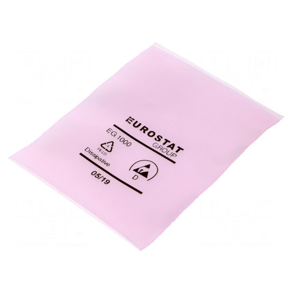 Torebka ochronna ESD typu rozpraszającego przeznaczona jest do zabezpieczania komponentów elektronicznych. Produkt wykonano z polietylenu w kolorze różowym, a jego grubość wynosi 90µm. Zastosowane tworzywo zapewnia rezystancję powierzchniową mniejszą niż 100GΩ, co pozwala na bezpieczne przechowywanie elementów wrażliwych na wyładowania elektrostatyczne.