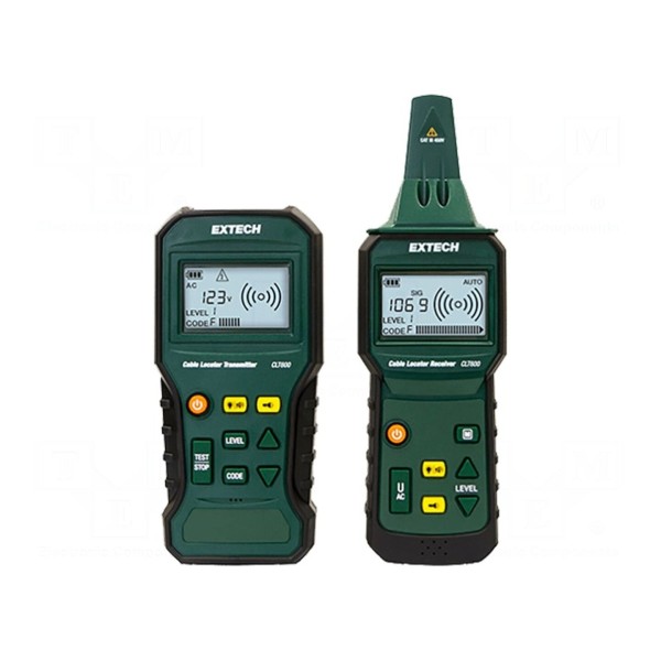 EXTECH CLT600 to lokalizator przeznaczony do śledzenia linii i gniazd oraz wykrywania przerw w przewodach pod napięciem. Urządzenie obsługuje zakres napięcia od 12 do 450V zarówno dla prądu przemiennego AC, jak i stałego DC. Sygnał wyjściowy wynosi 125kHz, co w połączeniu z trybami pracy 1-biegunowym i 2-biegunowym pozwala na wykrywanie przewodów na głębokość odpowiednio do 2m oraz 0,5m. Przyrząd umożliwia również lokalizację bezpieczników, wyłączników na tablicach rozdzielczych oraz metalowych kanałów grzewczych i rur wodociągowych.
