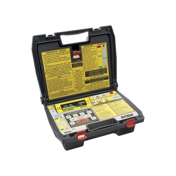 Miernik rezystancji izolacji EXTECH MG500 to przyrząd przeznaczony do pomiarów w zakresie od 800kΩ do 500GΩ przy napięciu testowym regulowanym w przedziale od 500V do 10kV. Urządzenie oferuje rozdzielczość pomiarową na poziomie 1kΩ oraz dokładność rzędu ±5%. Konstrukcja urządzenia umożliwia zaawansowaną diagnostykę dielektryków, w tym pomiar współczynnika absorpcji (DAR) oraz wyznaczanie wskaźnika polaryzacji.