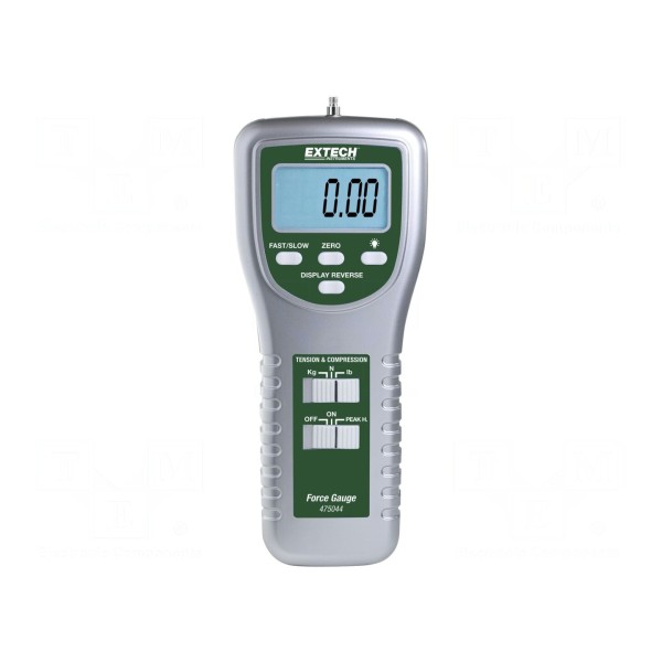 Urządzenie służy do precyzyjnego pomiaru siły w zakresach 0–196N, 0–20kg oraz 0–44Ibs z dokładnością na poziomie 0,5%. Wyniki pomiarów prezentowane są na czytelnym, 5-cyfrowym wyświetlaczu LCD. Przyrząd obsługuje jednostki pomiarowe takie jak N, kg, Ibs oraz oz.