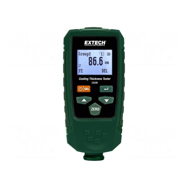 Tester grubości lakieru EXTECH CG206 przeznaczony jest do pomiarów warstw powłok w zakresie od 0 do 1350µm. Urządzenie oferuje dokładność pomiaru na poziomie ±(2,5% + 2µm) i zostało wyposażone w pamięć zdolną do przechowywania 1500 wyników. Integracja z oprogramowaniem umożliwia dalszą analizę zgromadzonych danych.