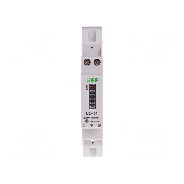 Licznik energii elektrycznej LE-01 jest urządzeniem służącym do bezpośredniego pomiaru energii czynnej w sieciach jednofazowych. Przyrząd posiada konstrukcję mechaniczną z analogowym wyświetlaczem. Przystosowany jest do pracy przy napięciu znamionowym 0,23 kV, przy czym zakres pomiaru napięcia AC wynosi od 160 V do 265 V. Nominalna wartość prądu znamionowego to 5 A, natomiast prąd maksymalny osiąga wartość 45 A przy częstotliwości pracy 50 Hz.