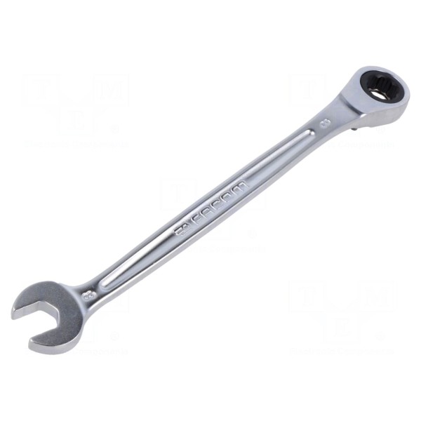 Klucz płasko-oczkowy wyposażony w mechanizm grzechotkowy o rozmiarze 8mm przeznaczony jest do prac montażowych oraz serwisowych. Konstrukcja narzędzia łączy funkcjonalność standardowego klucza płaskiego z szybką pracą, jaką zapewnia zintegrowana grzechotka w części oczkowej.