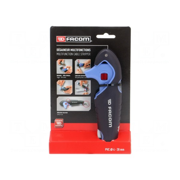 Narzędzie przeznaczone jest do zdejmowania izolacji z przewodów o przekroju okrągłym. Zakres obsługiwanych średnic zewnętrznych wynosi od 4 mm do 28 mm.