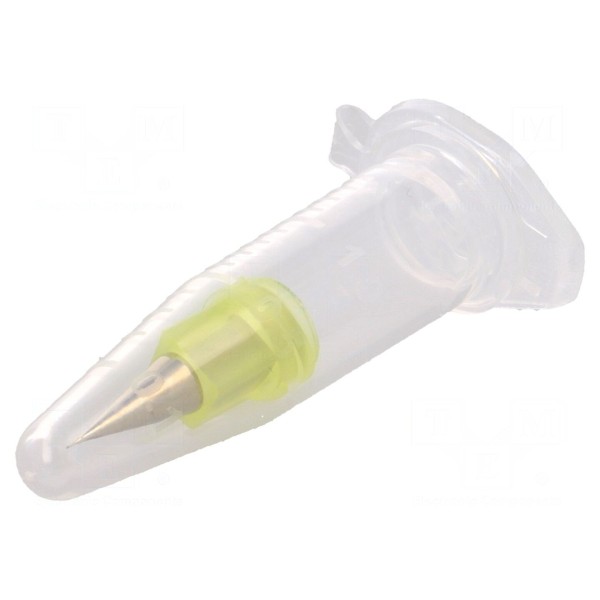 Dysza dozownicza FISNAR MICRO-50U posiada średnicę wewnętrzną 0,06 mm i jest wyposażona w standardowe mocowanie Luer Lock. Korpus elementu wyróżnia się żółtym kolorem.
