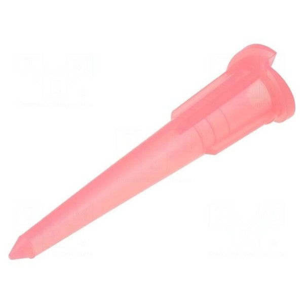 Plastikowa igła dozująca o rozmiarze 24 przeznaczona jest do współpracy z dozownikami. Element charakteryzuje się prostym kształtem o budowie podwójnego stożka oraz czerwoną barwą korpusu.