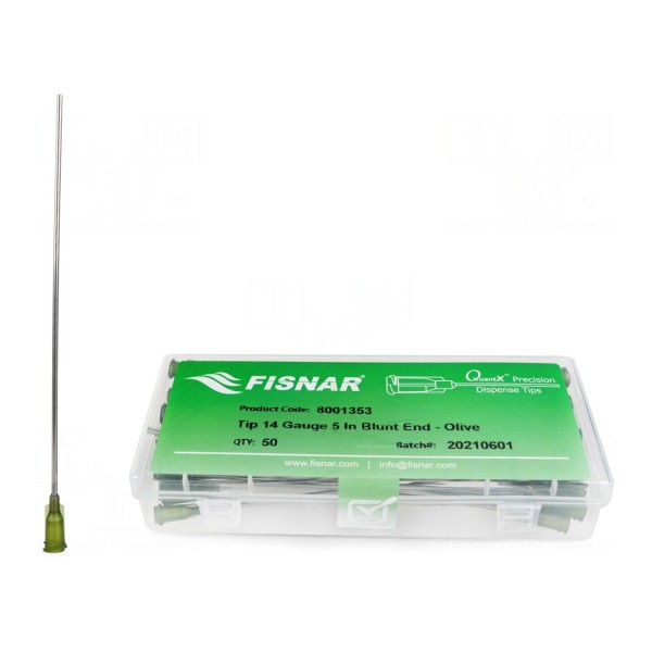 Igła dozująca o rozmiarze 14 wykonana została ze stali, posiada prosty kształt oraz średnicę wewnętrzną wynoszącą 1,6 mm. Element wyposażono w mocowanie typu Luer Lock, które zapewnia stabilne połączenie z urządzeniem dozującym. Długość całkowita igły wynosi 5 cali.
