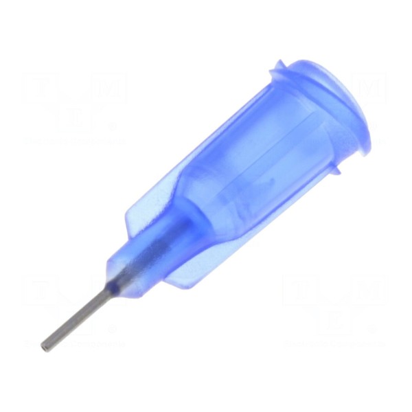 Igła dozująca o prostej konstrukcji wykonana ze stali z korpusem z polipropylenu w kolorze niebieskim. Element przeznaczony jest do wykorzystania w systemach dozowania i posiada mocowanie typu Luer Lock, co zapewnia pewne połączenie. Średnica wewnętrzna igły wynosi 0,41 mm, przy długości roboczej 0,25".