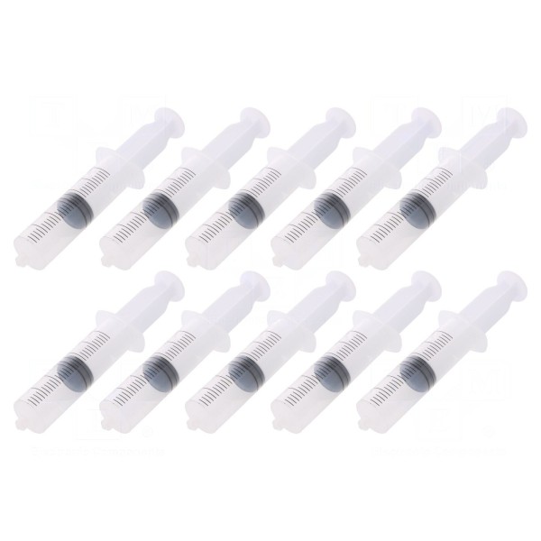 Element wyposażono w złącze typu Luer Lock, które zapewnia stabilne połączenie z igłami oraz akcesoriami dozowniczymi. Zestaw zawiera 10 sztuk strzykawek.