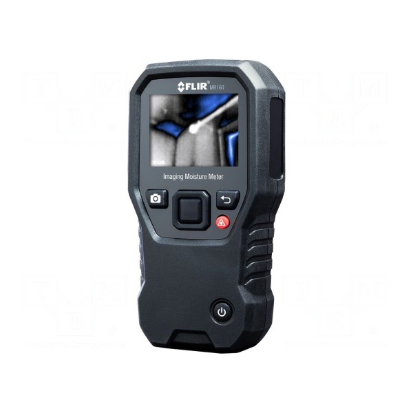 Higrometr FLIR MR160 to urządzenie umożliwiające bezinwazyjny pomiar wilgotności materiałów budowlanych oraz drewna w zakresie od 0 do 100% RH. Przyrząd integruje funkcje pomiarowe z obrazowaniem termowizyjnym, korzystając z wbudowanej kamery o rozdzielczości 80x60 pikseli. Obraz wyświetlany jest na kolorowym ekranie LCD TFT o przekątnej 2,3 cala i rozdzielczości 320x240 pikseli, co pozwala na lokalizację obszarów zawilgoconych.