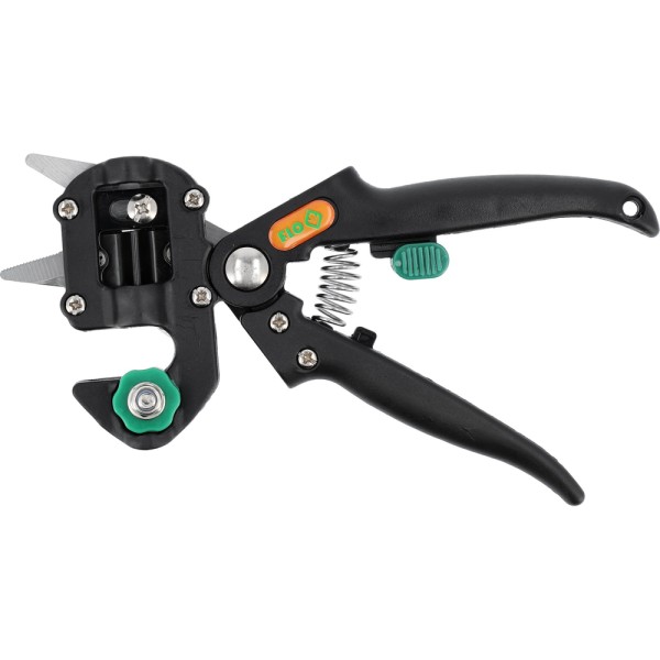 Sekator służy do szczepienia drzewek, krzewów i winorośli oraz do wykonywania cięć. W zestawie znajduje się trwały futerał.
