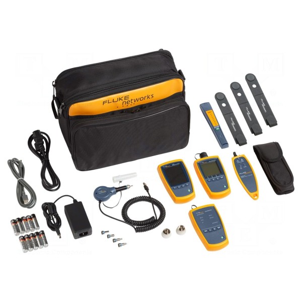 W zestawie: adapter SC, ST i LC, kamera inspekcyjna FNET-FI-500, lokalizator uszkodzeń przewodów FNET-VISIFAULT, miernik mocy optycznej FNET-SFPOWERMETER, torba przenośna, zdalny identyfikator FNET-FINDFIBER, źródło światła do światłowodów SFMULTIMODESOURCE. Urządzenie jest kompatybilne z oprogramowaniem LinkWare, które umożliwia zarządzanie wynikami pomiarów.