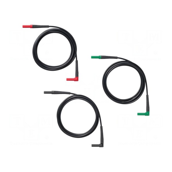 Konstrukcja każdego przewodu obejmuje wtyk bananowy 4mm oraz kątowy wtyk bananowy 4mm. Akcesoria są zgodne z normami bezpieczeństwa CAT III 1500V oraz CAT IV 1000V. W zestawie znajdują się przewody pomiarowe w kolorach: czarnym, czerwonym i zielonym, w ilości 3 sztuk.