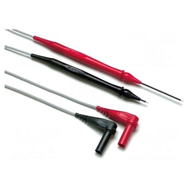 Przewody pomiarowe FLUKE TL40 charakteryzują się napięciem znamionowym 300V oraz prądem znamionowym 3A. Konstrukcja końcówek pomiarowych umożliwia regulację długości igły w zakresie od 0 do 76mm, co pozwala na dostosowanie narzędzia do specyfiki wykonywanych pomiarów. Od strony przyrządu przewody zakończone są standardowym wtykiem bananowym 4mm.