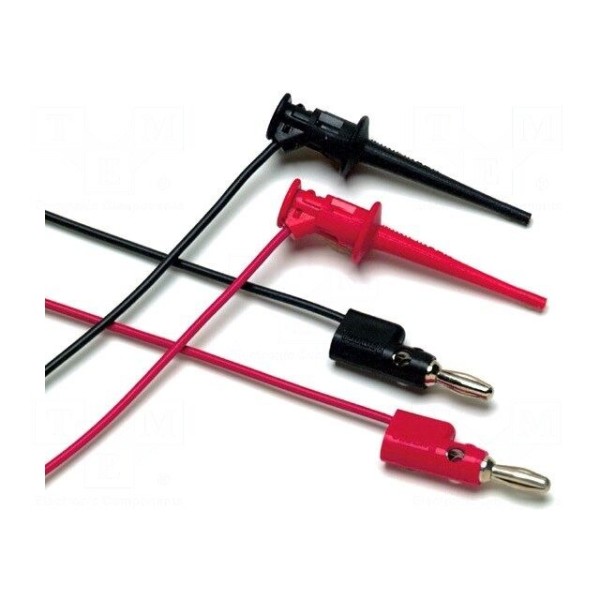 Elementy chwytające zapewniają rozwarcie szczęk na poziomie 2,3 mm, co pozwala na wygodną obsługę punktów testowych. Zestaw dostępny jest w kolorze czarnym i czerwonym, co ułatwia identyfikację biegunowości podczas wykonywania pomiarów. W zestawie: przewody pomiarowe x2.