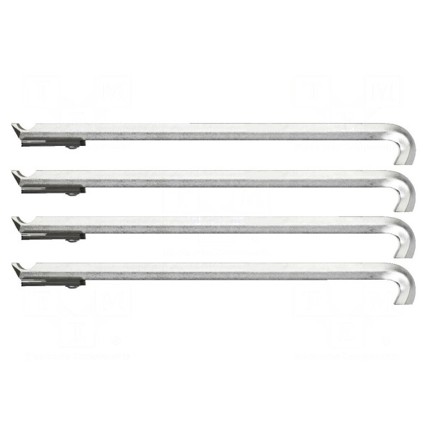 Produkt stanowi zestaw czterech haków przeznaczonych do ściągaczy łożysk. Każdy element charakteryzuje się długością wynoszącą 186mm.
