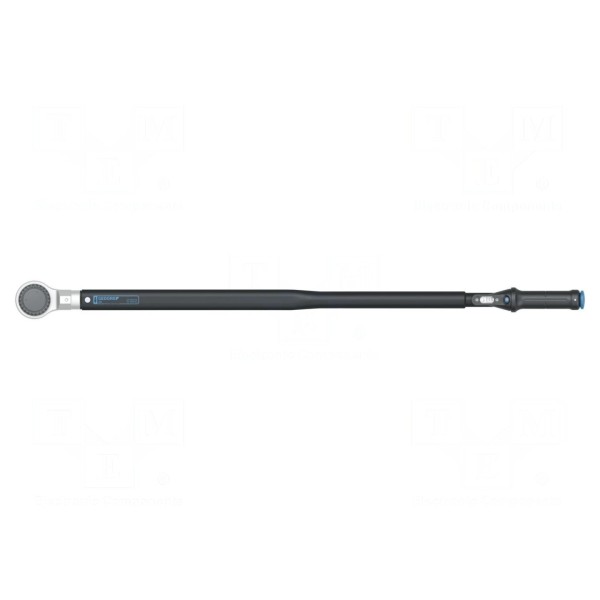 Klucz dynamometryczny z mechanizmem grzechotki wykonany ze stali. Narzędzie przeznaczone jest do pracy z momentem obrotowym w zakresie od 110 do 550Nm.