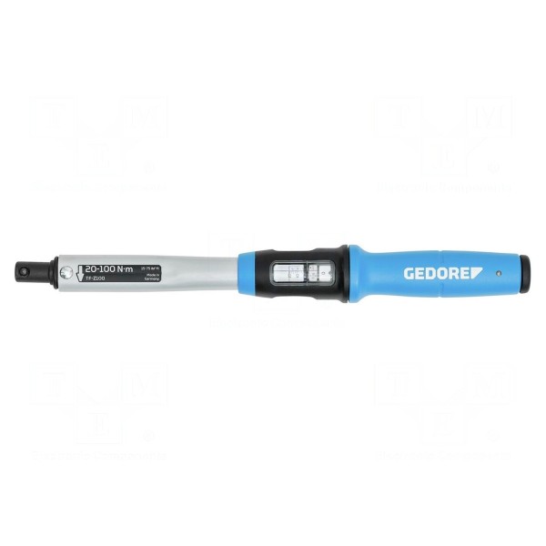 Klucz dynamometryczny wykonany ze stali, przeznaczony do prac wymagających kontroli momentu dokręcania w zakresie od 20 do 100 Nm. Narzędzie posiada dwukierunkowy mechanizm pracy oraz gniazdo uchwytu o rozmiarze 16 mm przystosowane do mocowania typu kołek. Dokładność pomiaru wynosi 3%.