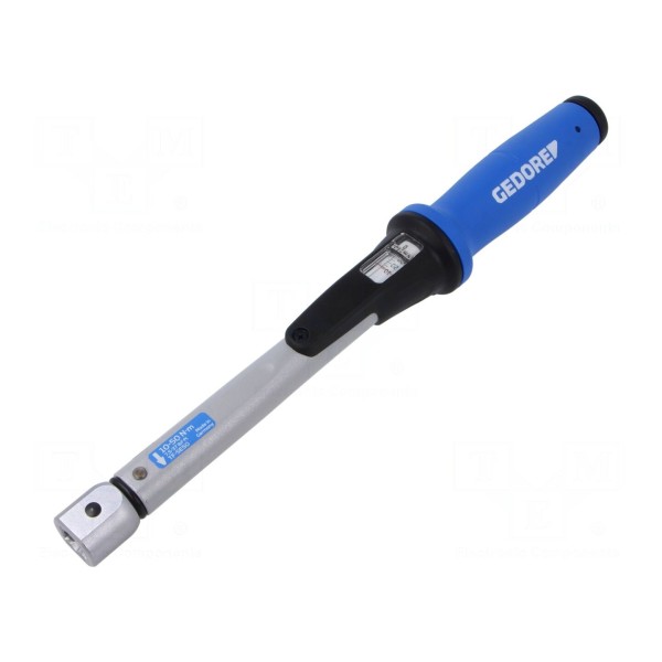 Klucz dynamometryczny marki GEDORE przeznaczony jest do kontrolowanego dokręcania śrub w zakresie momentu obrotowego od 10 do 50 Nm. Urządzenie charakteryzuje się dokładnością na poziomie 3% i jest zgodne z normą ISO 6789. Konstrukcja narzędzia przystosowana jest do pracy z wymiennymi końcówkami dzięki zastosowaniu gniazda o wymiarach 9x12 mm.