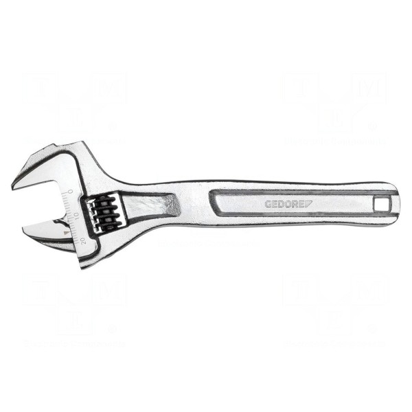 Klucz nastawny wykonany ze stali chromowo-wanadowej, przeznaczony do prac montażowych i warsztatowych. Narzędzie posiada możliwość regulacji rozwarcia szczęk do 30mm oraz głowicę płaską odgiętą pod kątem 15 stopni, co ułatwia dostęp w ograniczonych przestrzeniach.
