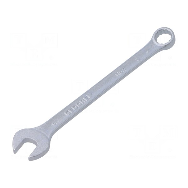 Główka oczkowa narzędzia jest odgięta pod kątem 15°, co ułatwia manewrowanie przy dokręcaniu i odkręcaniu śrub. Całkowita długość klucza wynosi 0,13m. Produkt został zaprojektowany do prac warsztatowych i serwisowych wymagających precyzyjnego dopasowania do elementów złącznych.