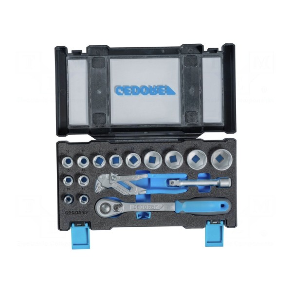 Komplet narzędzi został zaprojektowany do prac warsztatowych wymagających wykorzystania nasadek o profilu 6-kątnym. Całość zestawu znajduje się w opakowaniu umożliwiającym przechowywanie wszystkich 18 elementów.