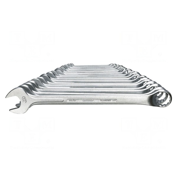 Zestaw zawiera klucze płasko-oczkowe wykonane ze stali chromowo-wanadowej. Komplet składa się z 17 elementów przeznaczonych do prac montażowych i serwisowych.