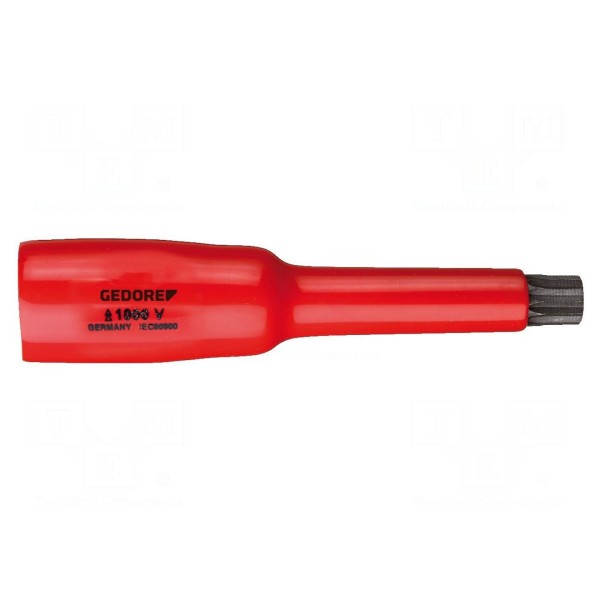Izolowana nasadka typu XZN M8 przeznaczona jest do pracy z połączeniami śrubowymi o profilu wielowypustowym. Narzędzie zostało wykonane ze stali chromowo-wanadowej, co zapewnia trwałość podczas użytkowania.