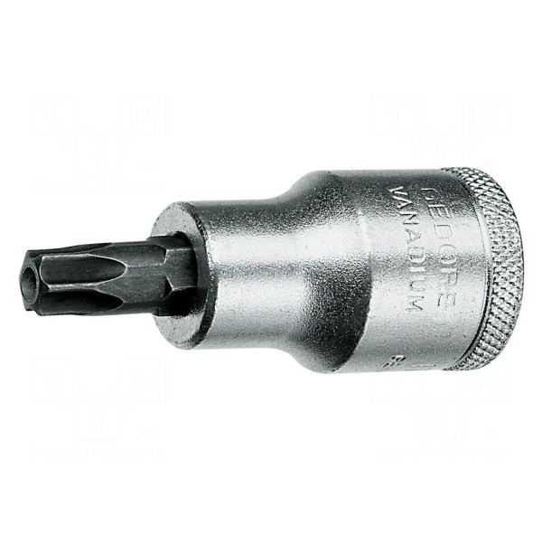 Nasadka narzędziowa wyposażona w grot typu Torx w rozmiarze T27. Element przeznaczony jest do współpracy z napędami o rozmiarze gniazda 1/2".