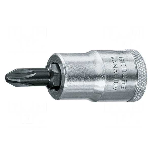 Nasadka wkrętakowa typu Phillips o rozmiarze grota PH2 przeznaczona jest do pracy z gniazdami o rozmiarze 1/2". Element ten charakteryzuje się długością całkowitą wynoszącą 60mm oraz zewnętrznym pokryciem warstwą chromu.