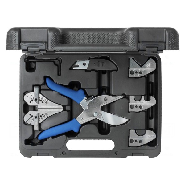 Nożyce przeznaczone są do cięcia rur wykonanych z tworzyw sztucznych. Narzędzie dedykowane jest do pracy z materiałami z tworzyw sztucznych.