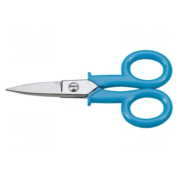 Nożyczki przeznaczone do prac tnących. Narzędzie charakteryzuje się konstrukcją przystosowaną do cięcia, osiągając całkowitą długość 140mm.